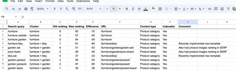 當我們進一步調查排名下降的可能原因時,我們將在接下來的步驟中使用此模板。