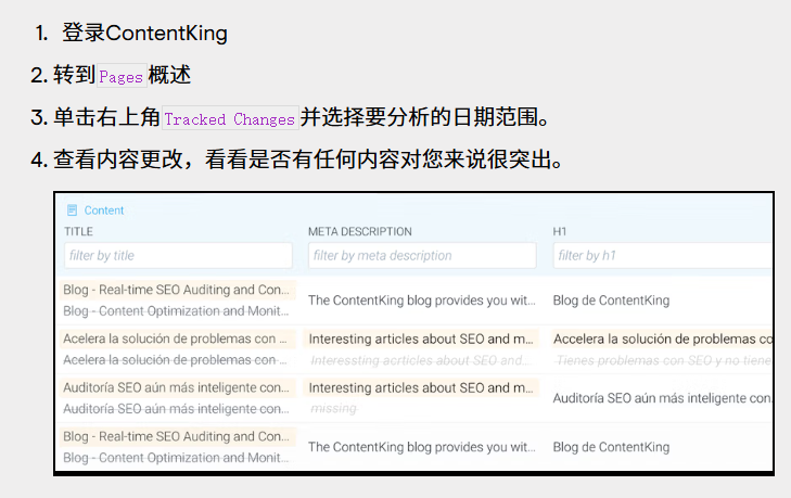 與跟蹤技術變更類似,跟蹤內容變更既耗時又容易出錯。您希望它像 ContentKing 一樣自動運行。