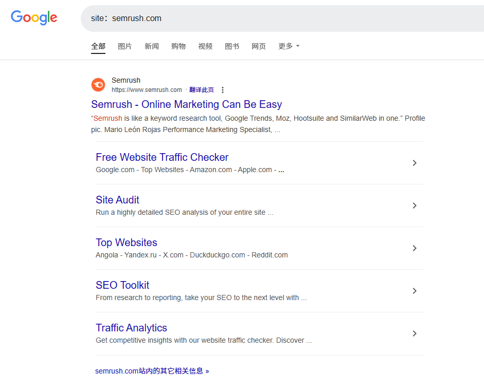 執行site:查詢以檢查您的網站是否仍被索引。site:查詢: