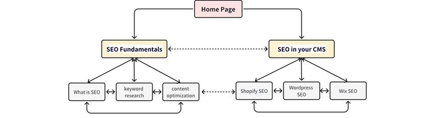 Pyramid structure是按頁面的重要級別從上到下建構,同樣是以話題為單位去匹配子級與母級。與Silo structure的主要區別在于它不禁止不同silo之間的互相鏈接。