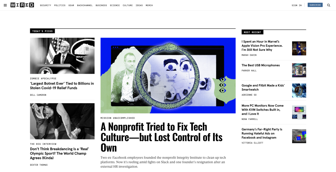 該布局經常包括一篇特色文章以及主頁上的二級、三級文章,往往有多個內容欄,適合具有大量內容的網站,特別是每天添加新內容的雜志或新聞網站。